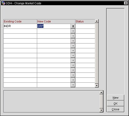 New Code. Select the down arrow to choose the new market code that all the existing market codes will be updated to.