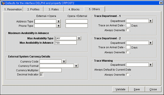 Validate. Functionality button to validate against OXI defaults that may be dependent on OPERA PMS settings. You will be prompted by OXI to set or remove defaults based on those OPERA PMS settings. (See the topic Default Relationships for full description of functionality.)