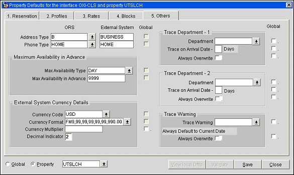 You can find out if you are in Global mode by checking the toolbar on top of the screen – it should read Global Defaults for the Interface OXI-OPERA. Further, global default values are shown in RED.