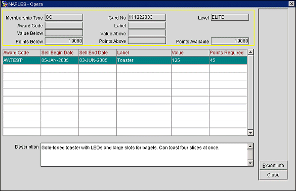 Export Info. Highlight your choice of award and select the Export Info button to display the Export for Fulfillment House screen. At this screen you can export the membership award information to the fulfillment house. This is the process for issuing the award.