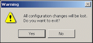 - Select the Cancel button. A warning appears, prompting you that all configuration changes will be lost.