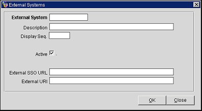 The External Systems screen allows a user to setup and activate interfaces for properties that communicate outside of OPERA. To set up the external systems in OPERA, select System>Configuration>Setup>Business Events>External Systems. The External Systems screen appears.