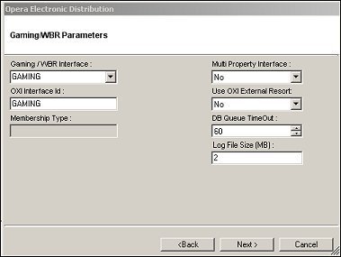 Select the Gaming/WBR Interface. Your selection options are: