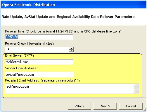Specify an email address to send email alert to users in case rate/restriction/price table rollover is not done on a regular basis automatically via the OAP utility.