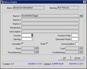 Price/Serving. Price Per Serving will be used only if the Menu Item is Included.